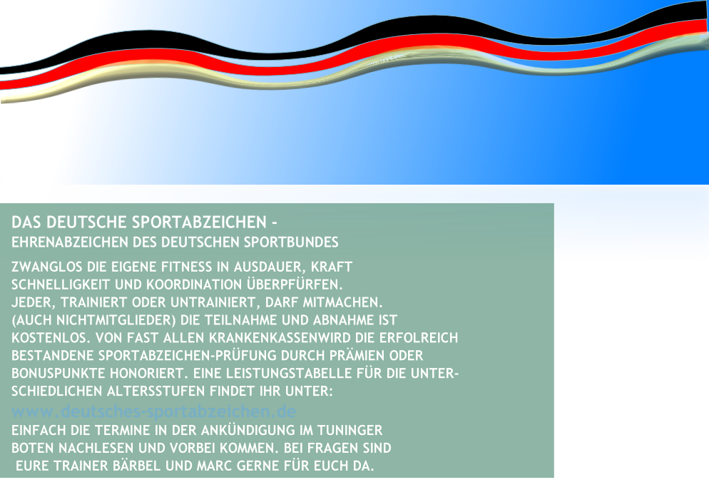 TG Tuningen Turngemeinde 1896 Tuningen e.V. UNSER VEREIN MITGLIED WERDEN IMPRESSUM DATENSCHUTZ Marc Stamm  Tel.: 07464/37202 SPORTABZEICHEN-TRAINING